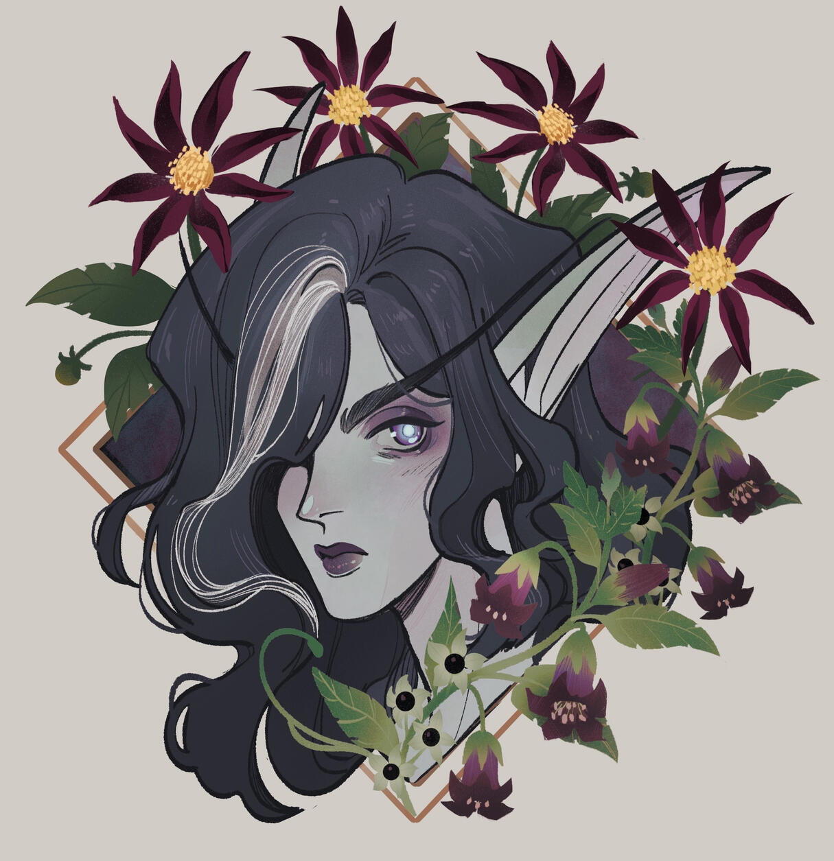 Appearance: Vyraeth radiates unsettling calm. Her skin is ashen lined with faint black veins, her long pale blonde hair streaked with silver, always twisted into horn-like braids or bound into a knot with needles or bone. Her silver eyes are near-luminescent in low light--sharp and unblinking. Her robes are layered silks dyed in bruised lilac and ink, with polished vertebrae and subtle spider motifs.A visionary, tactician, and living legend among poison crafters. Cold, brilliant, and quietly cruel, she is the true power behind the Spiderfang name. Rumors accuse her of orchestrating her consort's death.Currently: Pulling strings and maintaining her role as the public face of the Spiderfang's. Turning a blind eye to Xal'irra's machinations.